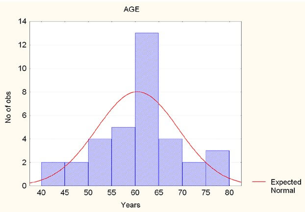 Figure 3 shows the histogram of ages (average 60.45 +/- 8.69 years). Both the ages and exposure durations (average 24.94 +/- 11.40 years) are representative of the population of workers introducing a compensation claim for NIHL at FEDRIS.